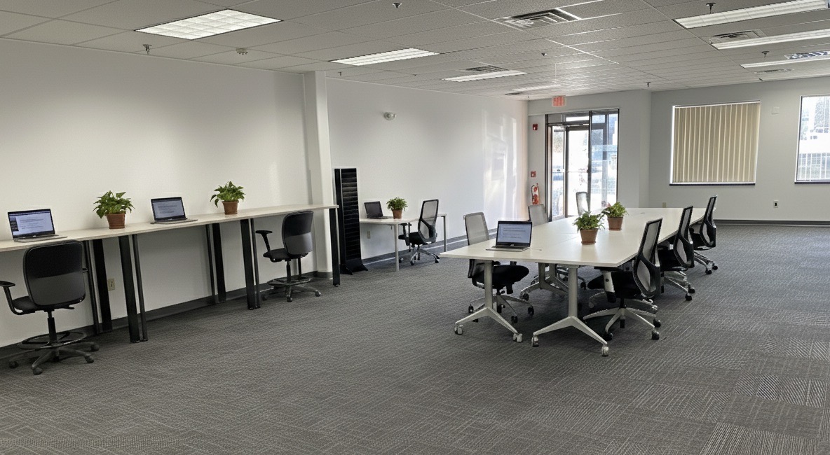 Flexhub Offices in Nashua is a flexible coworking space and virtual address solution for professionals who want convenience, credibility, and a better place to get work done. You’ll find us at 77 Northeastern Blvd., Ste 105, Nashua, NH 03062—right on the Massachusetts border and easy to reach just off the highway, making it ideal for commuters, client meetings, and teams that need a reliable workspace. With four private offices available to rent and a large conference room, this location is built to support how you work today.